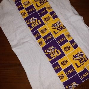 Perfect for an LSU fan parent! Thick, soft and works very well. Handmade!