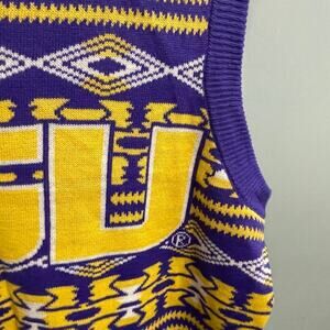 LSU Sweater Vest Mens Small VNeck Ugly Sweater Louisiana Tigers Purple Gold