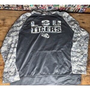 LSU Tigers Hoodie Mens XL Gray Camo OHT Military Appreciation Pullover Colosseum