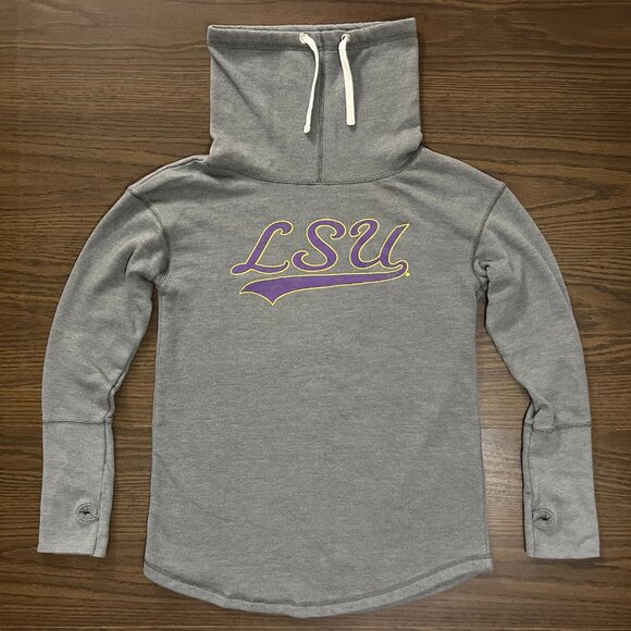 LSU Tigers Women’s Funnel Neck Hoodie Gray Campus Couture Large Thumbholes