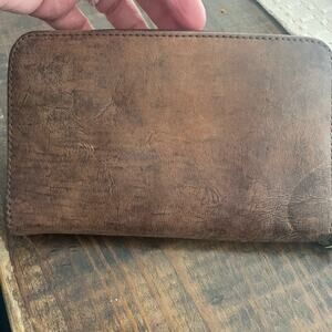 Cute LSU faux leather zip around wristlet, features LSU logo and purple swirl embroidery on the front