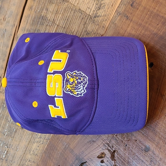 purple and gold LSU hat one size fits most per the tags sewn in hat