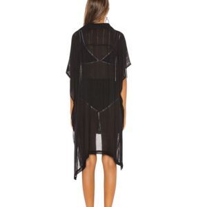 L' Space Anita Black Cover up Button Down Collar Neckline Semi Sheer M/L