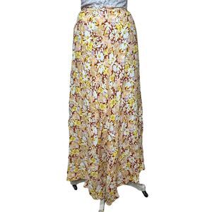 L*Space Anza Floral Tie Wrap Closure Maxi Skirt Yellow Brown Women's S NWT