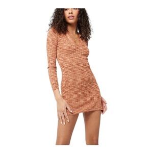 This slim fit mini with A line silhouette and side slits features slim sleeves and a deep ribbed V neck and collar, and can be kept casual with sandals or dressed up with heels.