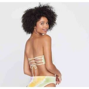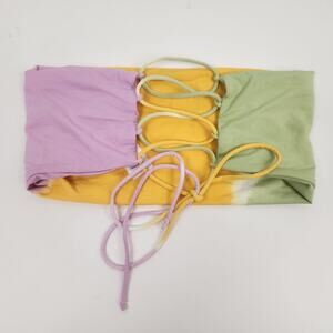 L*Space Beach Wave Strapless Bikini Top in Tie Dye Yellow Green Pink Size XL NWT