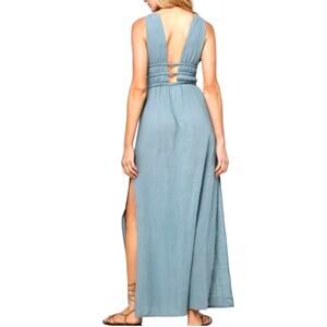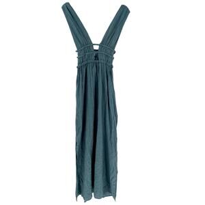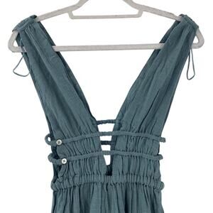 A trio of shirred tiers in a slated gray sunlight slub fabric that moves with you makes the Bella dress from Hanna Montazami an effortless pick. Wear her as a cover-up or pair with lace-up sandals for a night out.