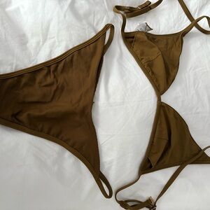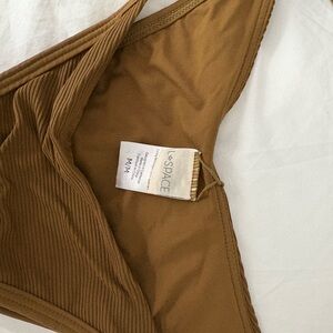 L*Space brownish green ribbed bikini. Top is a small and bottoms are a medium. Top style is Millie and bottom style is Jay.