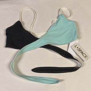 L*Space Chloe Reversible Block Wrap Bikini Top Charcoal/Mint/White Size XS NWT