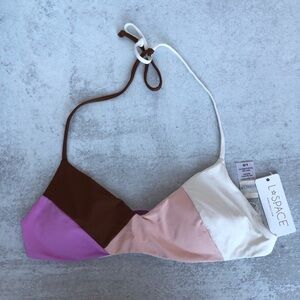 L*Space Colorblock Bikini Top Large Brown Pink