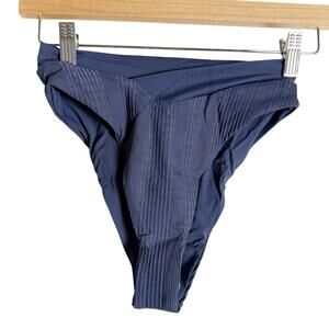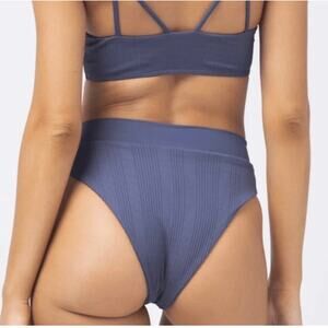 L*Space Court Slate Crossover V Waist Ribbed High Leg Bikini Swim Bottoms S