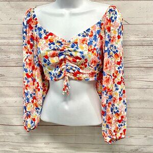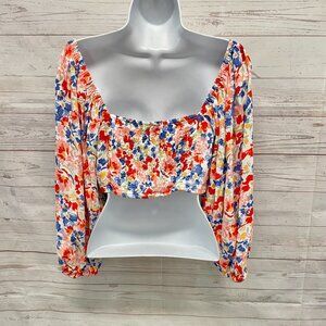 Romantic and right on trend, the L*Space Flowers Forever Farryn Top features a crop top fit with plunging sweetheart neckline with elastic at shoulders and cuffs, billowy 3/4 length sleeves, smocked back and a flattering cinched tie front detail in double lined 100% Viscose floral print.
