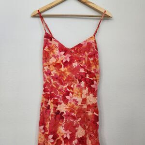 Turn heads in this stunning L*Space floral maxi dress, featuring a vibrant tropical print in shades of red, coral, and peach. Designed with a flattering V-neckline, adjustable spaghetti straps, and a side slit for effortless movement, this dress combines modern femininity with laid-back resort vibes.