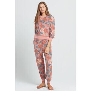 L*Space Hayes Pink Floral Print Crewneck Pullover Sweatshirt Size Small