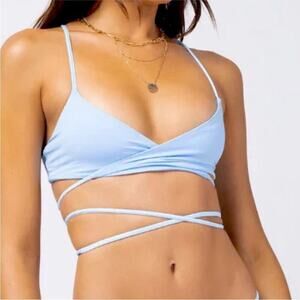 L*Space Kristen Sky Blue Swim Bikini Top Adjustable Racerback Large New