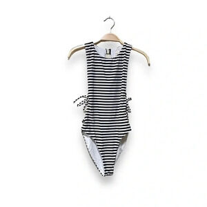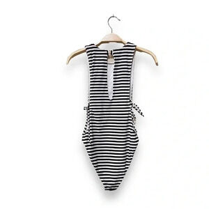L*Space Laura Domino Black White Stripe Side Cut out Tie One Piece Swimsuit 4