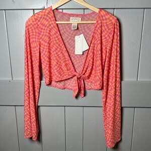 L*Space Lightweight Geometric Pink and Orange Tie Front Wrap Size M NEW