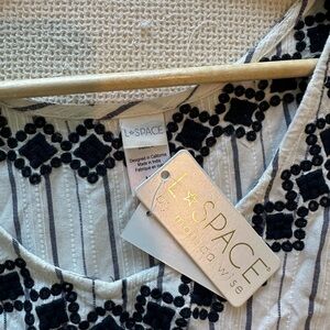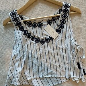 L*Space NWT Navy and White Striped Tank Top with Tassel Accents