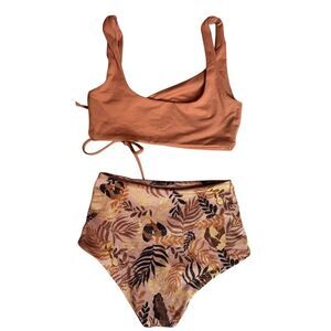 L*Space Neutral Brown 2 Piece Bikini Swimsuit Wilder Top & High Waist Bottom XS