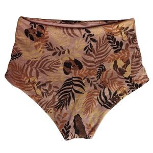 L*Space Brown Floral Metallic Swim Beach High Waist Cheeky Bikini Bottom Size XS