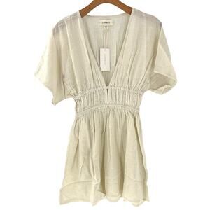 Flow like the waves in the Ocean Eyes Tunic. This mini style dress stands out with a super-deep V neck that leads into two neat rows of encased elastic that nip in the waist. From there we have short kimono-style sleeves and a flowy skirt that drapes in just the right way.