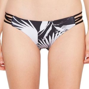 LSpace L*Space Black and White Shadow Palm Leaf Print Low Down Strappy Bikini Bottoms