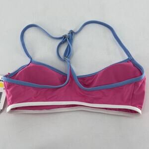 Get your beach body on with the Pamela Bikini Top. A little bit athletic and a whole lotta fun, this pullover top features a scooped neckline with adjustable straps, removable pads, and racerback with ring detail.
