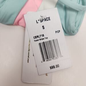 L*Space Rebel Stripe Bikini Top Green Pink Cream Size Small NWT