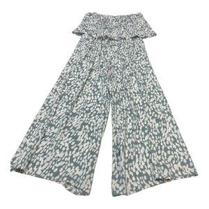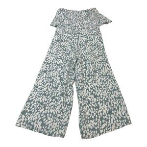 LSpace Revolve Jumpsuit Womens L Paulina Green Dot Strapless Smocked Wide Leg