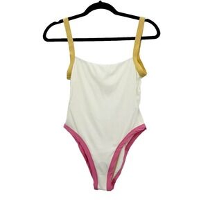 Move over Pam Anderson, there's a new bae on this beach! The Baewatch One-Piece embodies our signature color-blocking with a new spin. Cream, Pink + yellow join forces to create a flattering suit that has classic coverage + a low back.