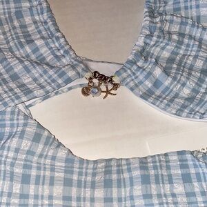 Create some waves in the seersucker plaid Rizzo One-Piece. The ocean-inspired charms and back/front cut-outs bring an unexpected element while the halter top holds you up.
