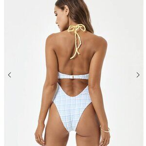 L*Space Rizzo seersucker blue and green and white swim suit xsmall