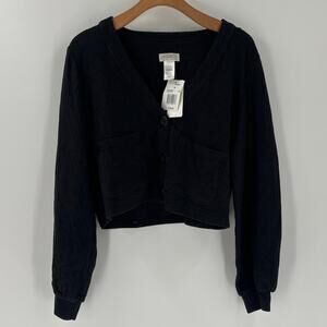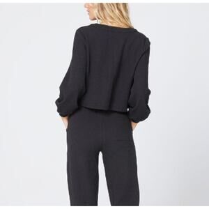 Everyone has that fave “I can throw this over anything” cardi, and the Romy Sweater is ours. Crafted in a soft and cozy terry fabric, this cropped v-neck sweater features a full-length balloon sleeve, button front closures, and front patch pockets. Pair with the matching Dune Pant for a seriously cozy look.
