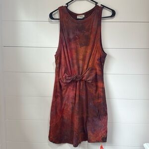 L*Space Seaview Tank Dress Twist Front Red Orange Tie Dye Limited Edition XL