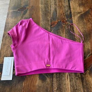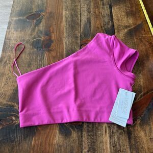 L*Space Size L Genessee One Shoulder Crop Top Hot Pink Basic Yoga Athleisure