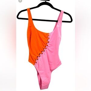 L*Space Solstice One Piece Swimsuit Colorblock Tangerine-Guava Size M NWT Lspace