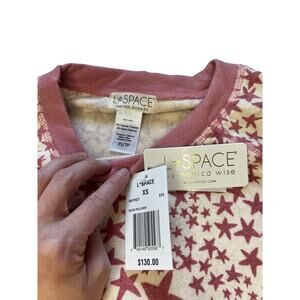 L*Space Star Print Stars Align Long Sleeve PJ top in Pink/Cream, size XS NWT