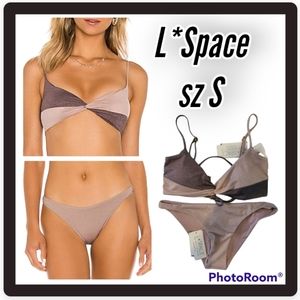 L*Space Ringo Color Block Triangle top Bikini & Camacho Hipster Bottom Mettalic Swimsuit set
