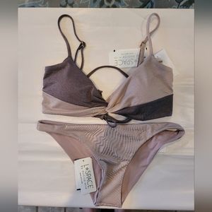 L*Space Swim Color Block Triangle top & Hipster Bottom Mettalic Bikini Set