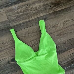 L*Space Swimsuit Women's XS Katniss Ribbed Cheeky One Piece Neon Green