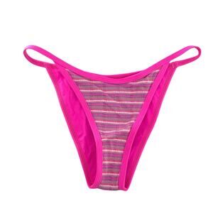 Get cheeky with the Tommy Bikini Bottom. Cut with a high leg, this bitsy bottom is constructed from pique stripe yarn dye fabric and pairs perfectly with the Pamela for a sexy sporty look.