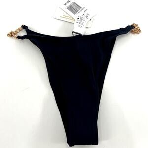 Add a little bling to your bikini with the Van Damme Bottom. These mega-babe bitsy bottoms feature a dazzling metal chain side detail.