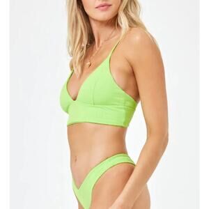L Space Winnie Bikini Top in Ribbed Lime Green - Size Large, new with tags!!