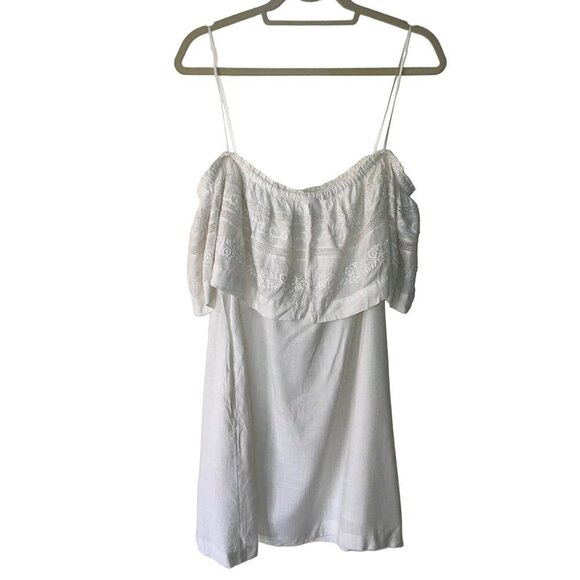 L*Space Women Abby Mini Dress Size Large White Off The Shoulder Ruffle Neck New