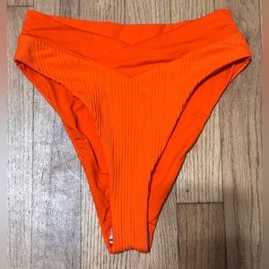 NWOT L*Space Womens Pointelle Rib Court Bikini Bottom in poppy orange/red