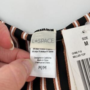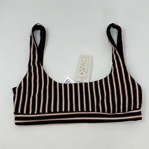 L*Space Women's Black Gold Horizon Miller Striped Bikini Swim Top Size M