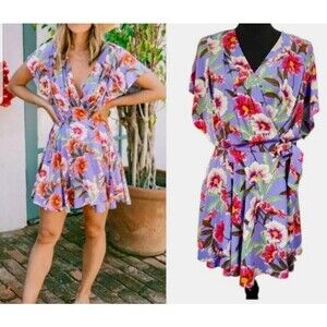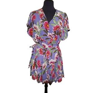 L*Space Wrap Dress Size Medium Purple Pink Floral Sunshine Feels Lost Summer