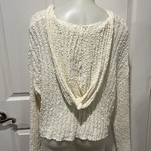 L*Space cream Olympia v neck hooded open knit cotton sweater size Small