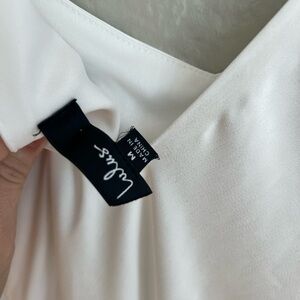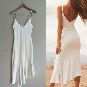 LStrictly Romance White Satin Asymmetrical Tiered Midi Dress