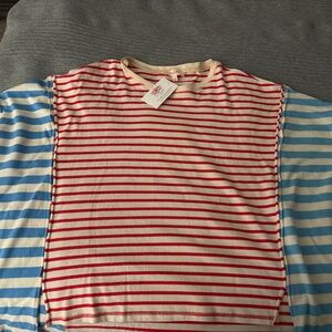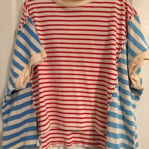 LT BLUE/RED MULTI STRIPE COLOR BLOCK OVERSIZED CROPPED TOP